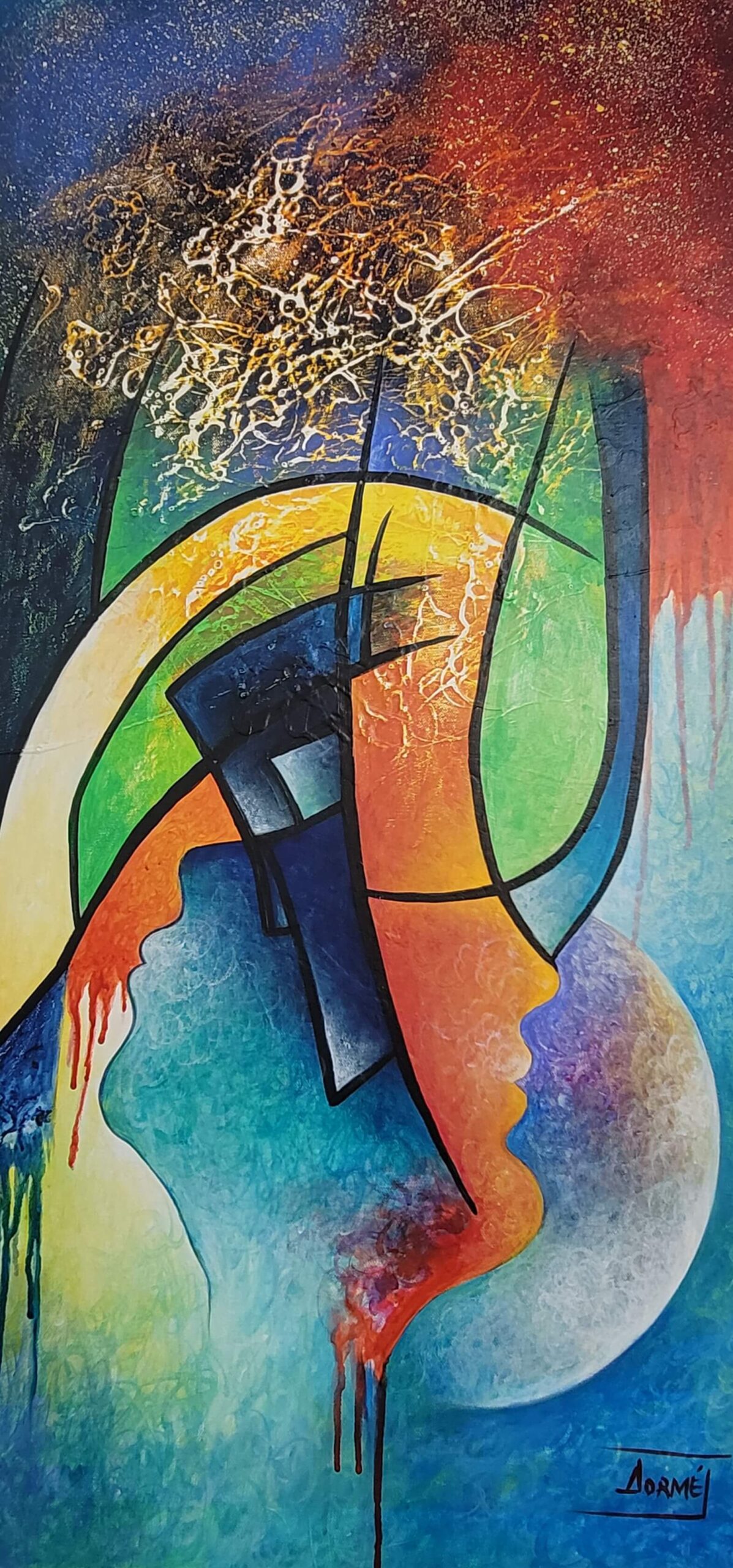 Born in Port-au-Prince, Ascelin Junior Dormé has lived in Canada since 2009. Passionate about drawing and geometry, he undertook studies in industrial design and architecture before enrolling at the National School of Arts in Port-au-Prince. He exhibited his first works in 2002 as part of a group exhibition at ENARTS. He is one of the founding members and advisor of LAAAV (Les Ateliers Authentiques d’Art Visuel) and also of the artistic movement “Cathartisme”
