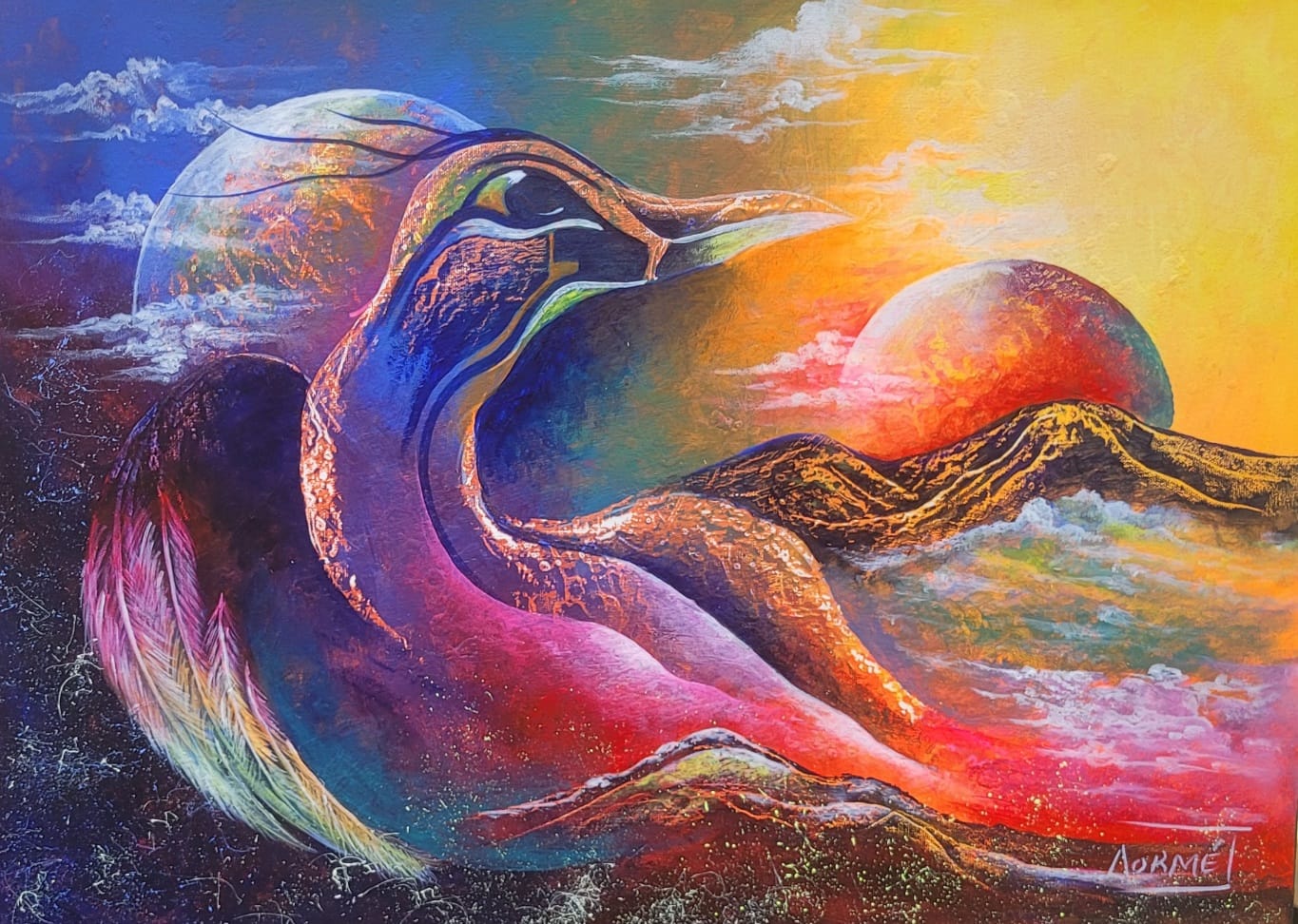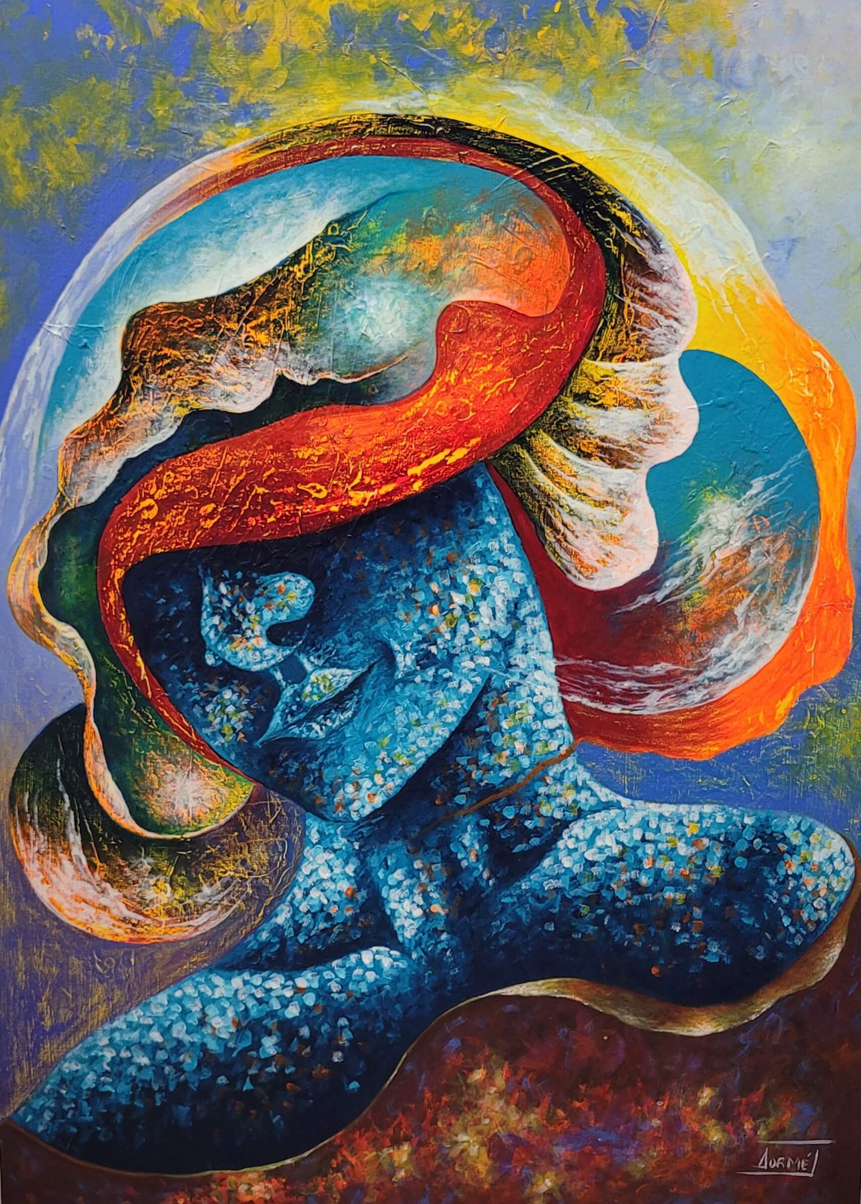 His art is part of practice aesthetics of contemporary art, while calling on the exploration of the unconscious through spontaneity and taking the freedom to go beyond conventions and principles with therapeutic aims. His works reveal colors, shapes, women, lines, birds, plays of light and harmony. Cathartism is an innovative artistic proposal dedicated to the exploration of the unconscious through spontaneity, with therapeutic aims. By tapping into the depths of the human spirit, this movement seeks to release pent-up emotions and promote a process of inner healing.